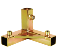 Square Tube 3 Way Corners are a piece of grip gear that allows you to join 3 pieces of 1" square tube together so that you can form a 3-dimensional corner. It's used by the grip department.