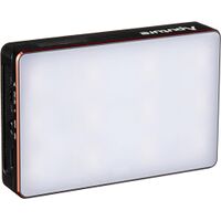 The Aputure MC Pro is a small panel style LED light. It includes Hue, Saturation, & Intensity (HSI) color control, as well as CCT mode. The fixture has RGB, Daylight, and Tungsten LEDs. It has built in effects to reproduce fire or various flicker effects.