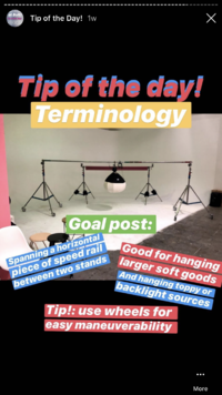 Is an instagram stories post that is ideally done once a day. the post is about any given tip when it comes to lighting or grip work and accompanies a photo to demonstrate the tip in some way.